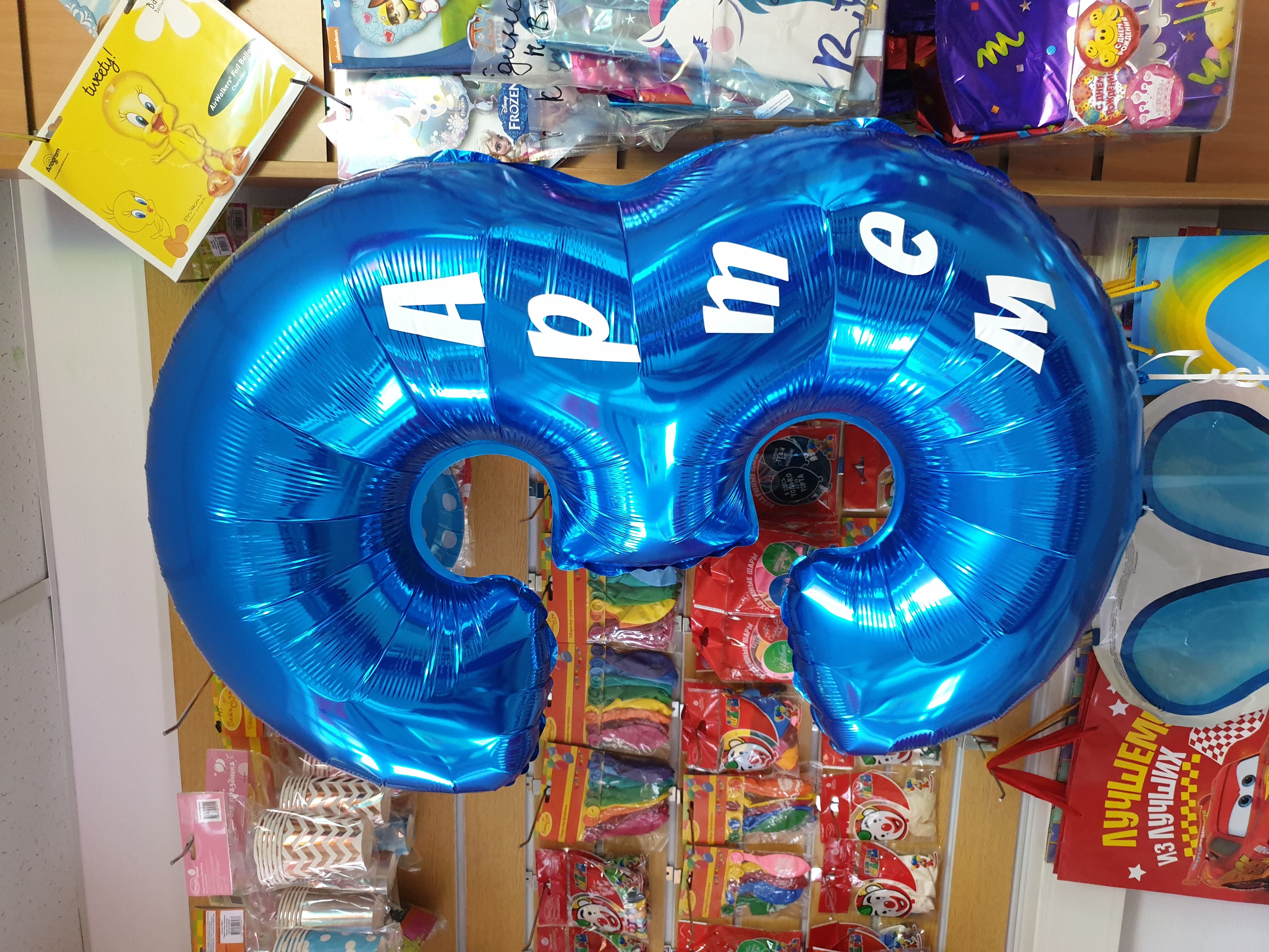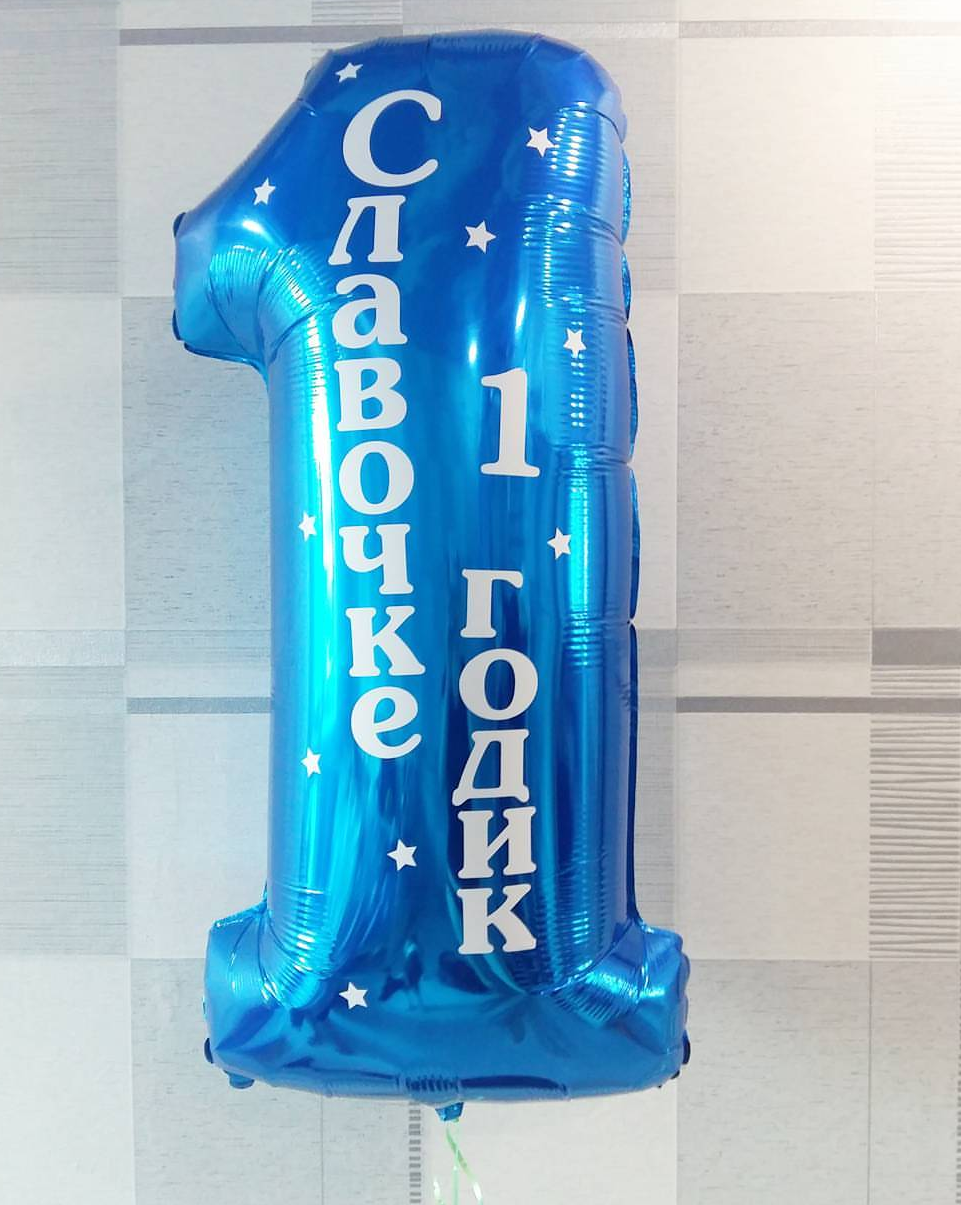 Фольгированная цифра высотой 102 см. Надута гелием, по желанию можно прикрепить к грузику и поставить в любом месте вашего помещения, будь это квартира или кафе...