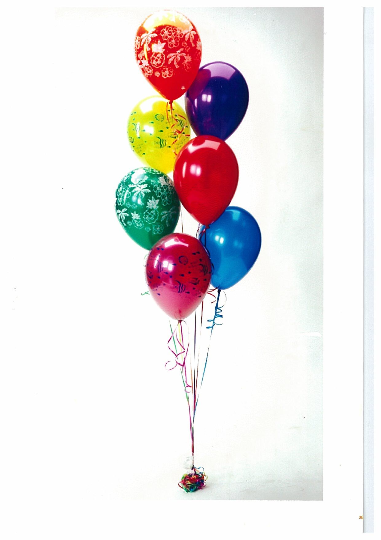 Композиция состоит из 4х шариков с печатью "С днем рождения" и 3х шариков без рисунков.