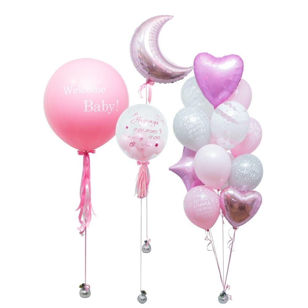 Набор воздушных шаров на выписку Для девочки № 7 наполненных гелием.