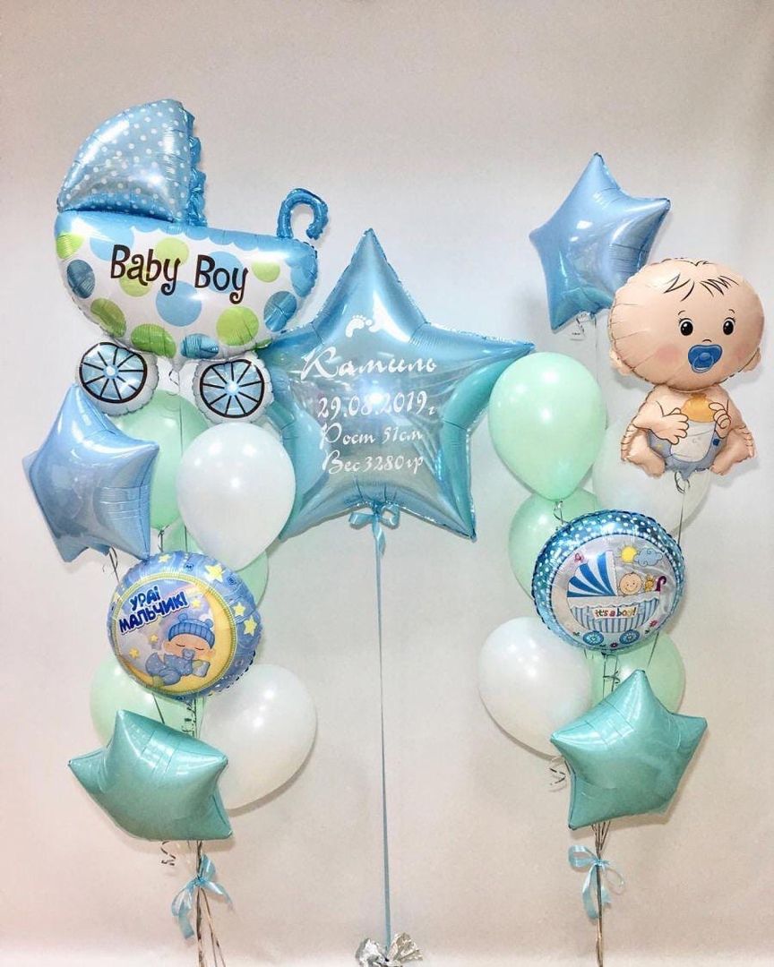 Композиция из шаров на выписку из роддома Для Мальчика № 8 наполненных гелием.