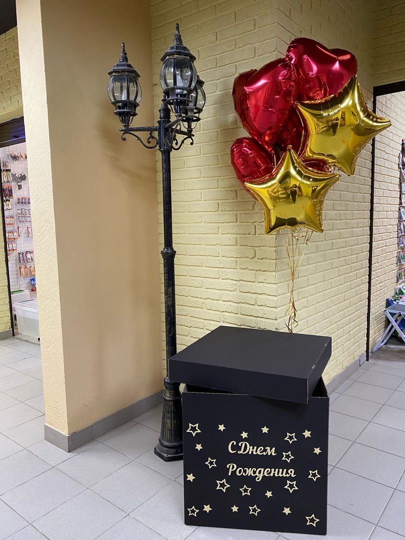 Коробка сюрприз с воздушными шарами с гелием № 5 - это уникальное и запоминающееся решение для любого праздника.